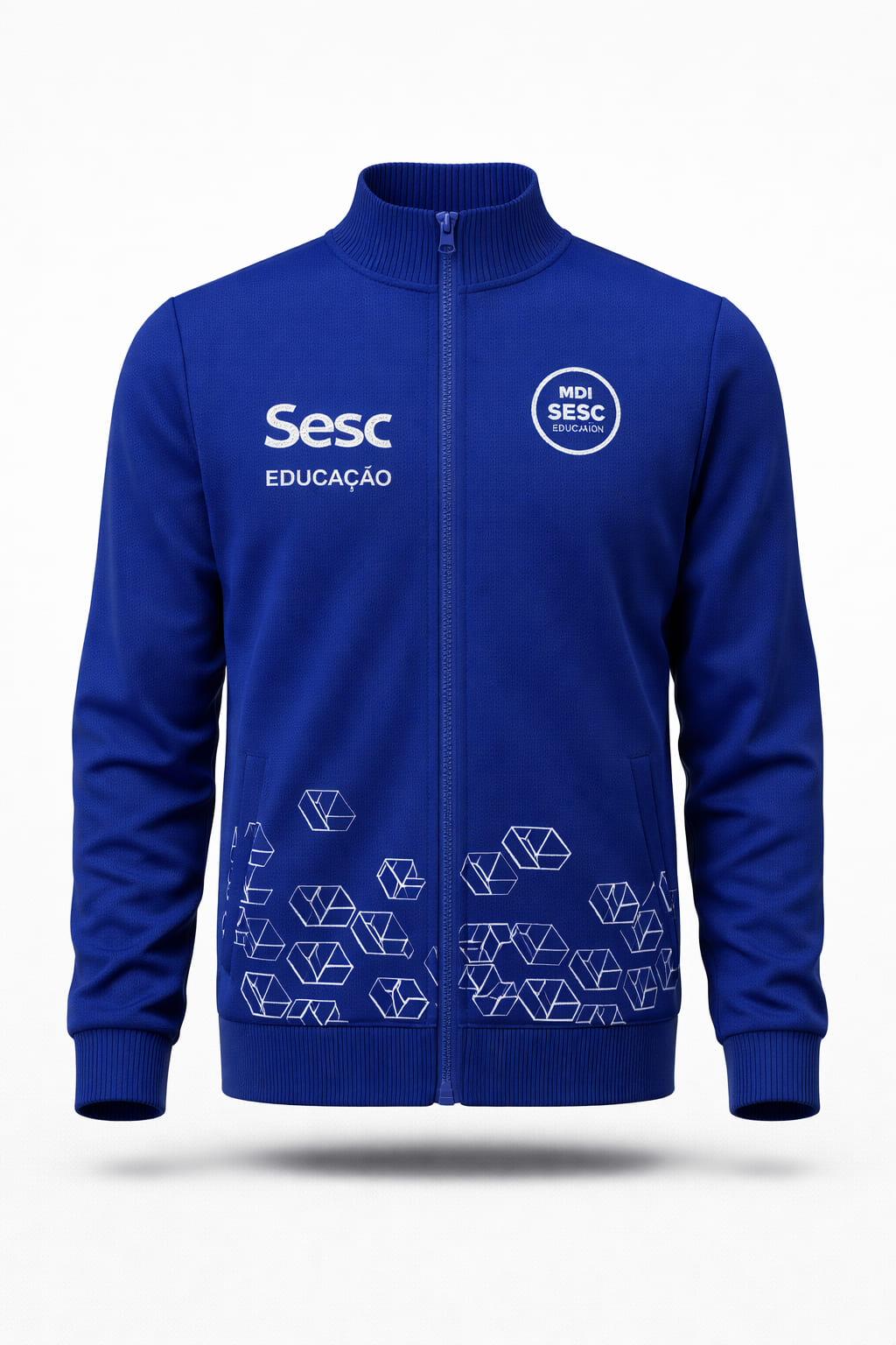 Jaqueta Tactel SESC em POLIÉSTER 100%, cor azul marinho. Confeccionada em tecido tactel de toque macio e acabamento leve, proporciona excelente respirabilidade e secagem rápida, ideal para uso escolar e atividades ao ar livre. Oferece proteção contra vento e chuva leve, mantendo conforto térmico sem perder mobilidade. Apresenta fechamento frontal em zíper resistente, gola alta para proteção do pescoço, bolsos laterais para acomodar as mãos e pequenos objetos, além de punhos e barra com acabamento em elástico para melhor ajuste. Costuras reforçadas aumentam a durabilidade da peça, e o acabamento facilita a manutenção do uniforme. Recomenda-se lavagem à máquina em ciclo suave, não utilizar alvejante, secar à sombra e passar em temperatura baixa quando necessário.